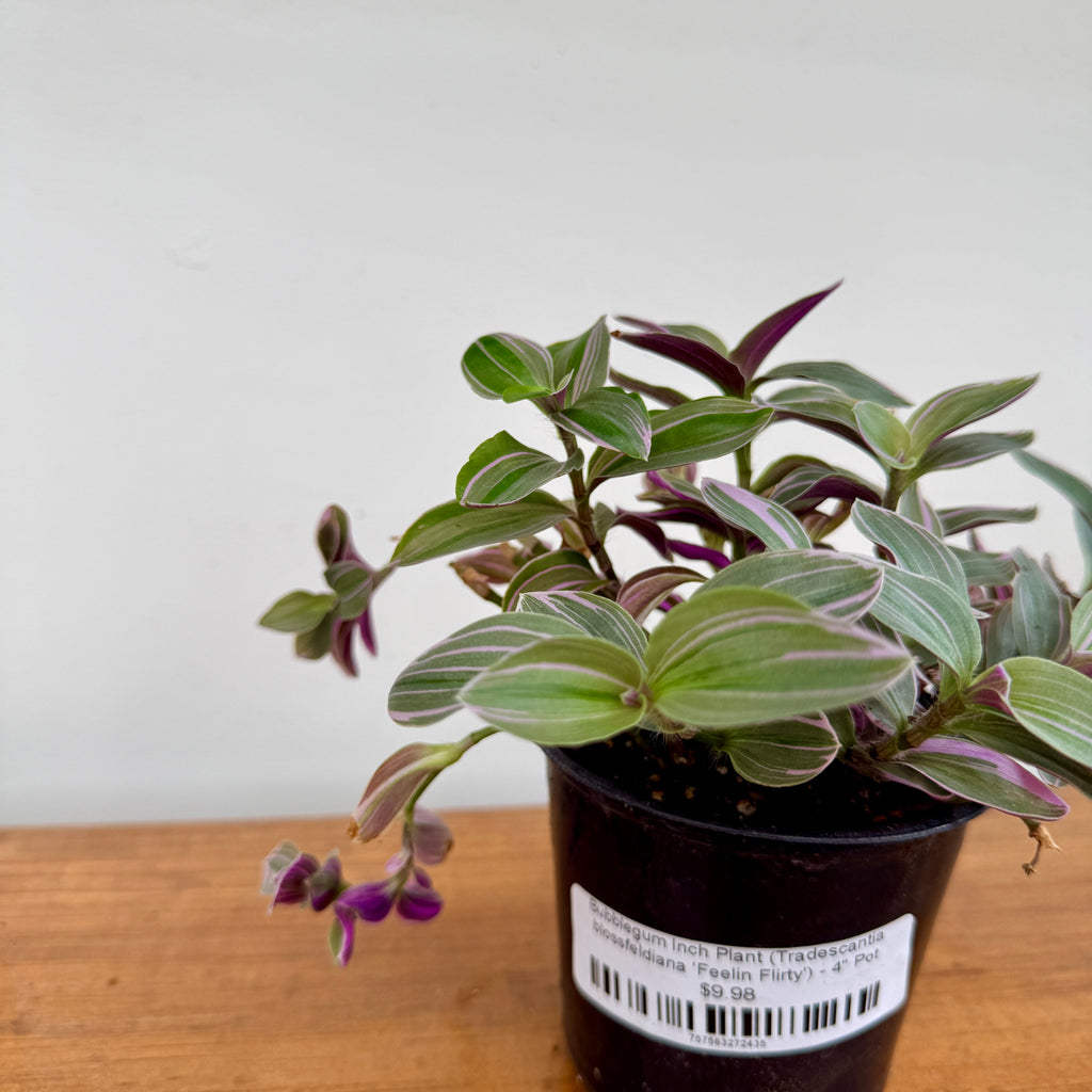 The Bubblegum Inch Plant is a vibrant, trailing beauty bursting with hot pink, lavender, and soft green tones—perfect for adding bold, playful colour to shelves, desktops, and hanging displays.