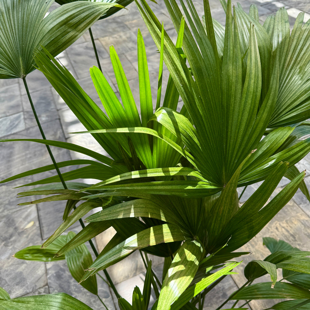 Bold, architectural, and full of tropical charm, the Chinese Fan Palm (Livistona chinensis) is a striking addition to any indoor or outdoor space. Known for its dramatic, fan-shaped fronds and slow-growing, upright habit, this palm creates an instant statement. Its graceful leaves arch elegantly, bringing texture and a lush, exotic vibe to patios, living rooms, or office spaces.