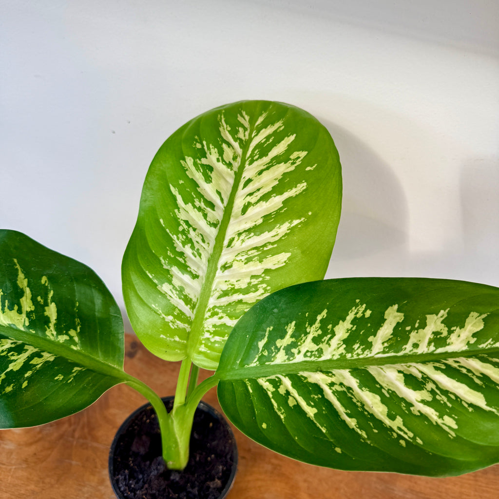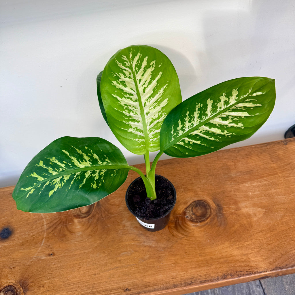 The Dieffenbachia ‘Tropic Snow’, also known as Dumb Cane, is a classic tropical houseplant loved for its large, glossy leaves streaked with creamy white and green variegation. Its bold foliage and upright growth habit make it a stunning accent for bright indoor spaces. Compact and easy to care for, this variety brings a lush, tropical look that thrives with minimal attention.
