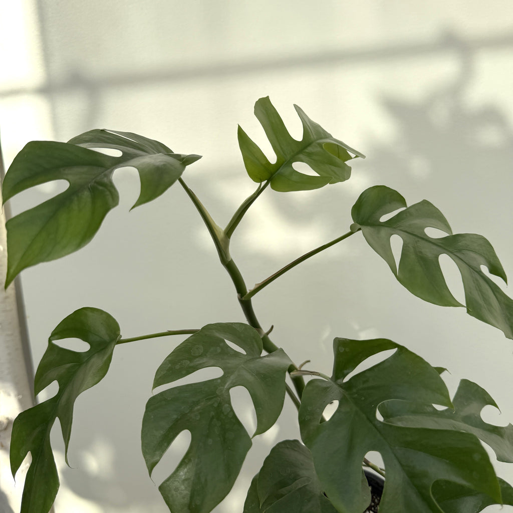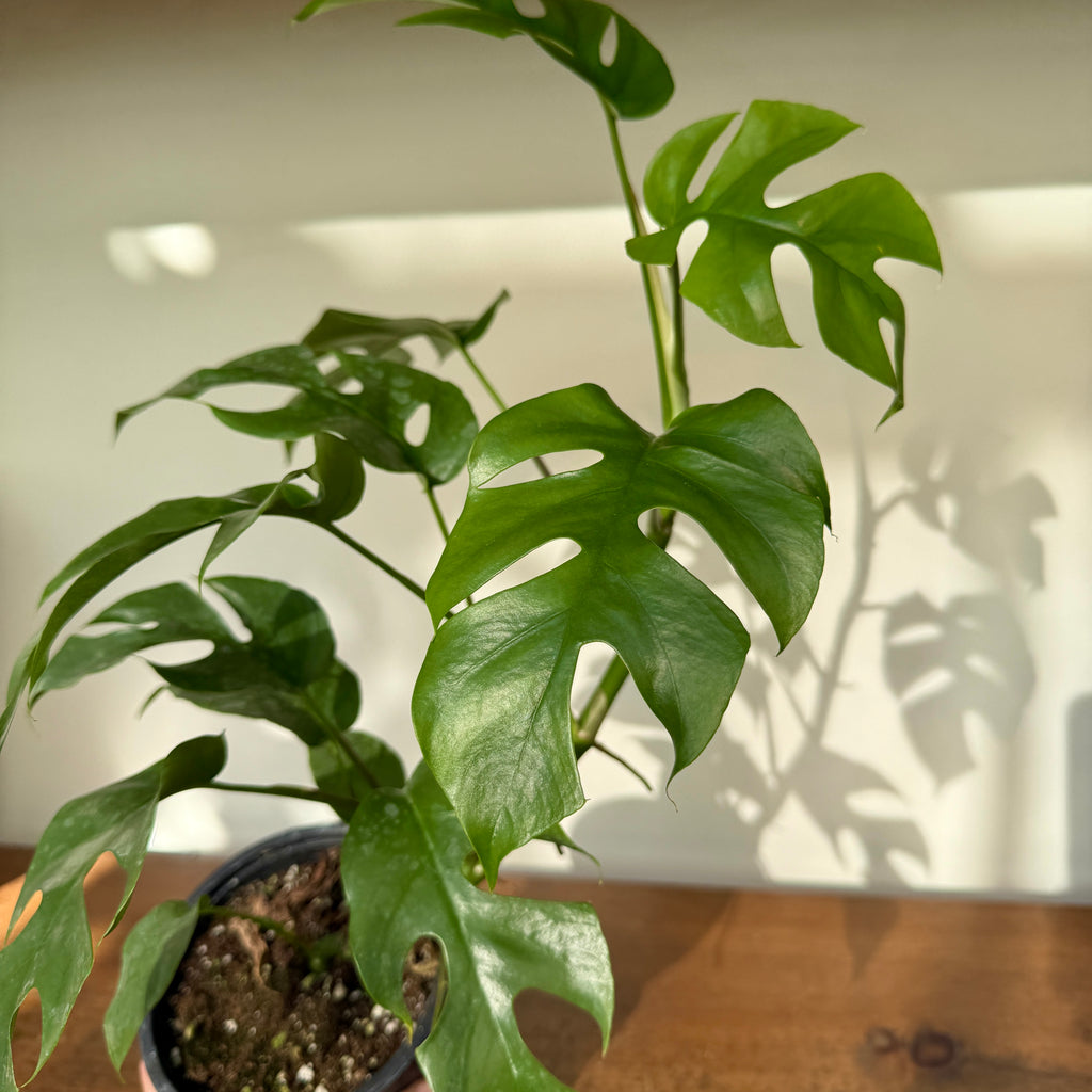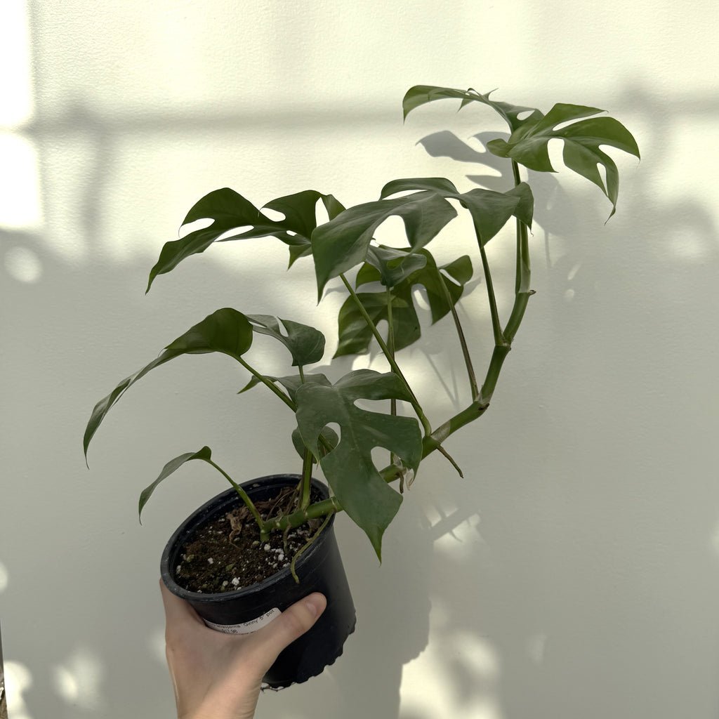 The Mini Monstera, also known as Rhaphidophora tetrasperma ‘Ginny’, is a compact vining plant with striking, fenestrated leaves that resemble a Monstera deliciosa—but in a smaller, faster-growing form. Perfect for apartments or smaller spaces, this trendy houseplant brings a bold, tropical vibe without taking over your room. With its climbing habit, it looks stunning trailing from a shelf or trained up a moss pole.